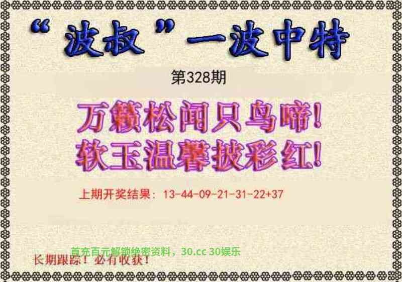 | 【波叔一波网】一肖一码《7529888.com》 | ||